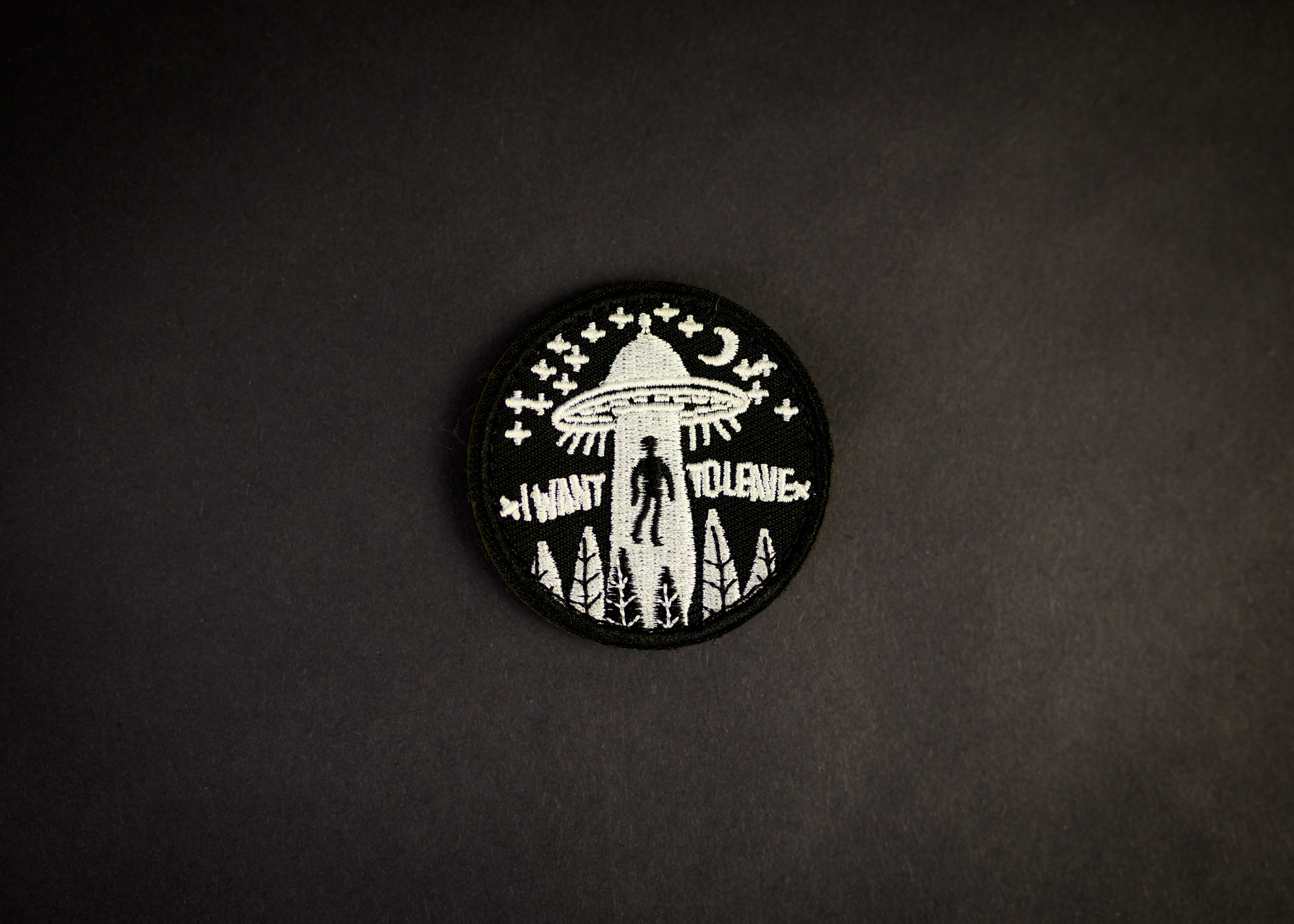 A fun "I want to leave" embroidered and velcro backed patch for your Vikingo Backpack.